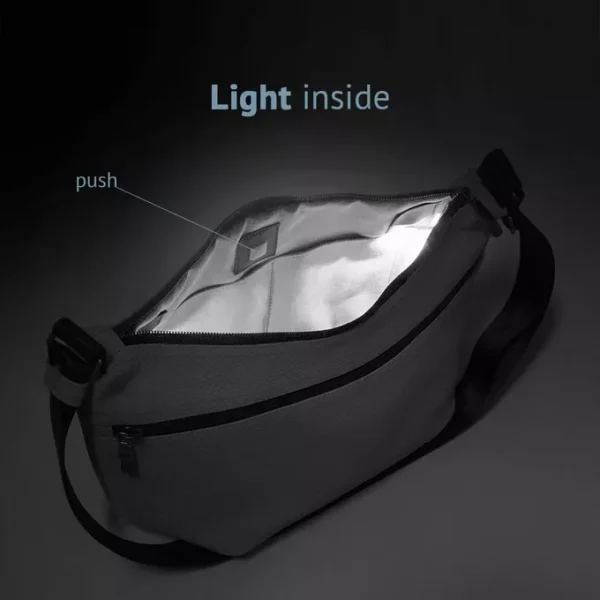 Para la construcción se utiliza una espuma de 2mm de alta densidad, haciendo que pese a ser una bandolera blanda, siempre mantenga su forma original. El forro interior está hecho de microfibra de poliéster gris con 2 bolsillos de acceso rápido y lleva incorporado nuestro sistema de iluminación interior.