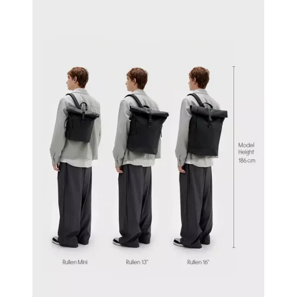 Descubre la mochila Gaston Luga Rullen 13", una mochila compacta, práctica y respetuosa con el medio ambiente. Fabricada con PU impermeable de alta calidad, esta mochila protege tus esenciales incluso en días lluviosos. Su diseño roll-top ajustable permite adaptar el espacio de almacenamiento a tus necesidades, mientras su compartimento acolchado asegura un ajuste perfecto para ordenadores portátiles de hasta 13". Además, cuenta con bolsillos frontales con cremallera, ideales para guardar pequeños objetos de uso diario. Libre de solventes DMFa y PFC, la Rullen es una elección consciente para quienes buscan estilo y sostenibilidad en un solo producto.